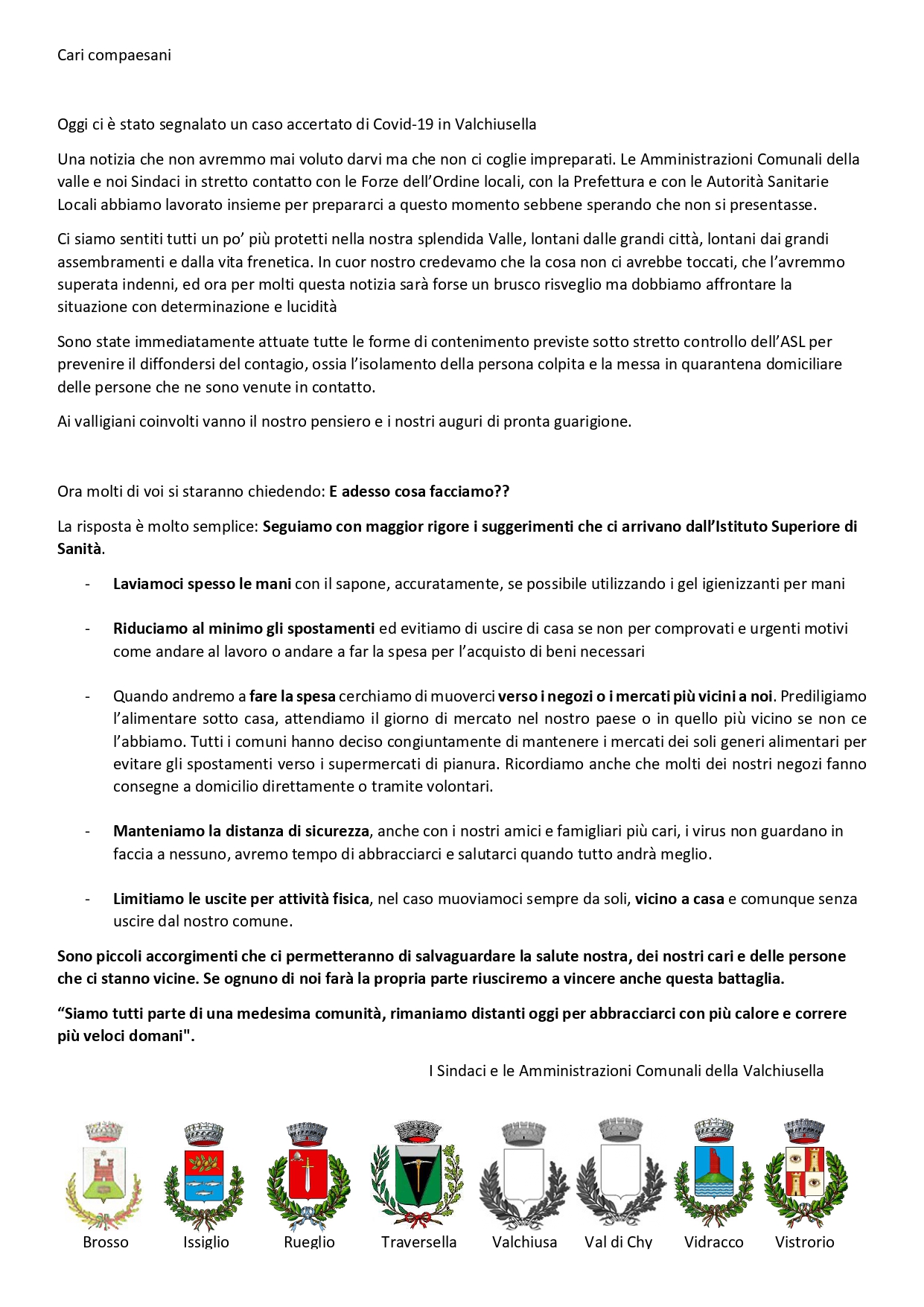 Comunicato congiunto Sindaci della Valchiusella