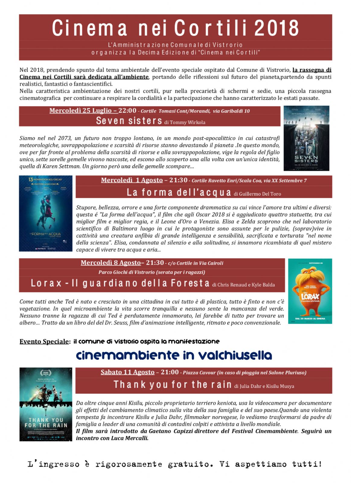 Rassegna cinematografica, in notturna, nei cortili delle abitazioni del Paese