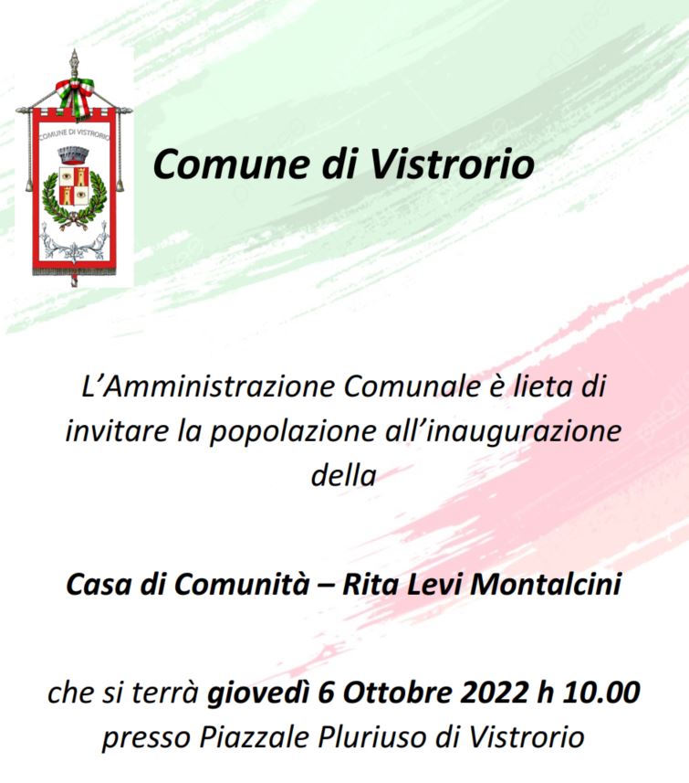 Giovedì 6 ottobre, alle ore 10, nella piazza antistante il salone polifunzionale, avverrà l’inaugurazione dei nuovi uffici dell’ASL, i quali sono stati ristrutturati e rivalorizzati nei mesi passati, e che assumeranno il nome di Casa di Comunità Rita Levi Montalcini.