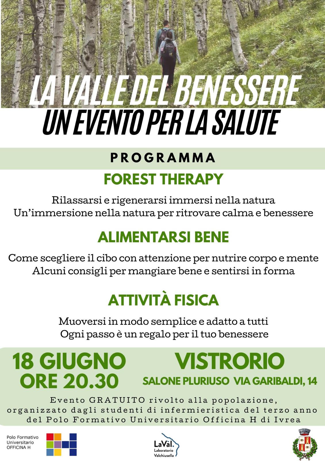 Si invita tutta la popolazione a partecipare all'evento: "La Valle del Benessere - Un evento per la salute" che si terrà presso il salone pluriuso di Vistrorio.