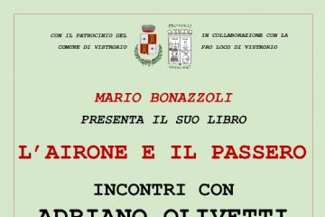 Si invita tutta la popolazione a partecipare alla presentazione del libro: L'Airone e il Passero, incontri con Adriano Olivetti, di Mario Bonazzoli