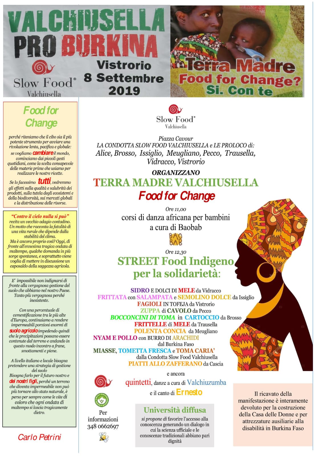 Il ricavato della vendita verrà devoluto ad un'associazione che opera in Burkina Faso e che verrà presentata durante la manifestazione stessa.