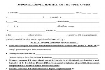 NUOVO MODELLO AUTODICHIARAZIONE PER SPOSTAMENTI
